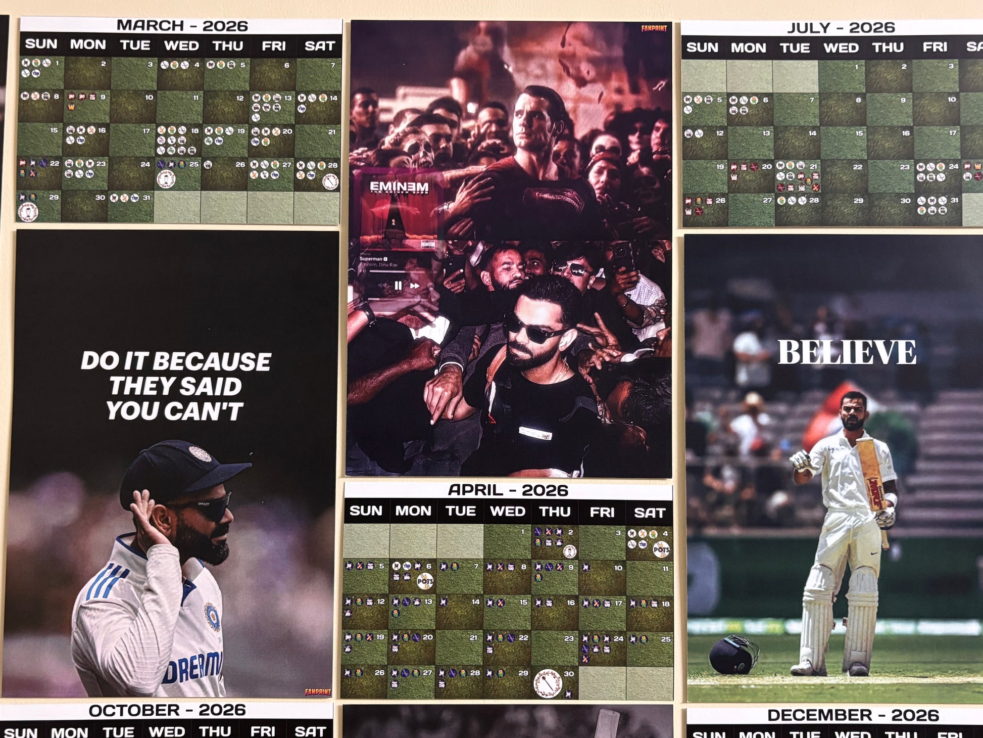 This calendar stacks an entire year of Virat Kohli’s achievements, impact, and intensity into a form that looks ordinary at first glance—and hits harder the longer you live with it.